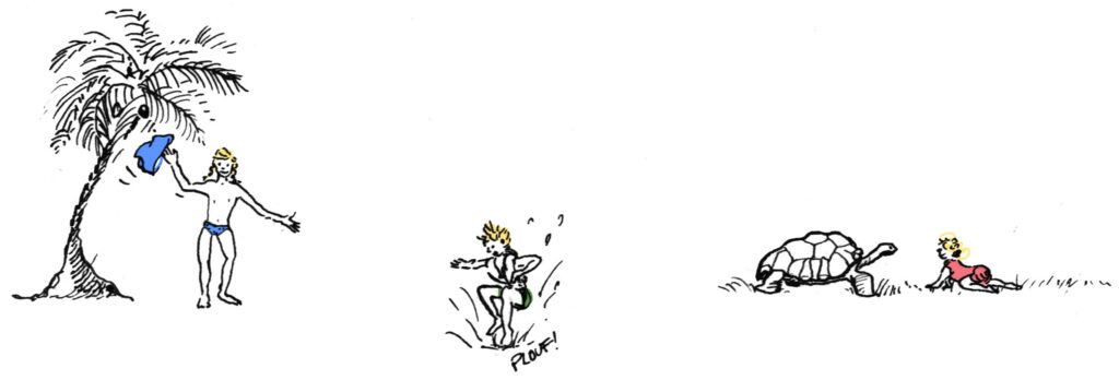 Par ailleurs, notre voyage s’étant déroulé sous des latitudes tropicales, il est possible de nager à toute heure. Quelle chance ! N’oublions toutefois pas que tout le monde ne sait pas encore flotter.