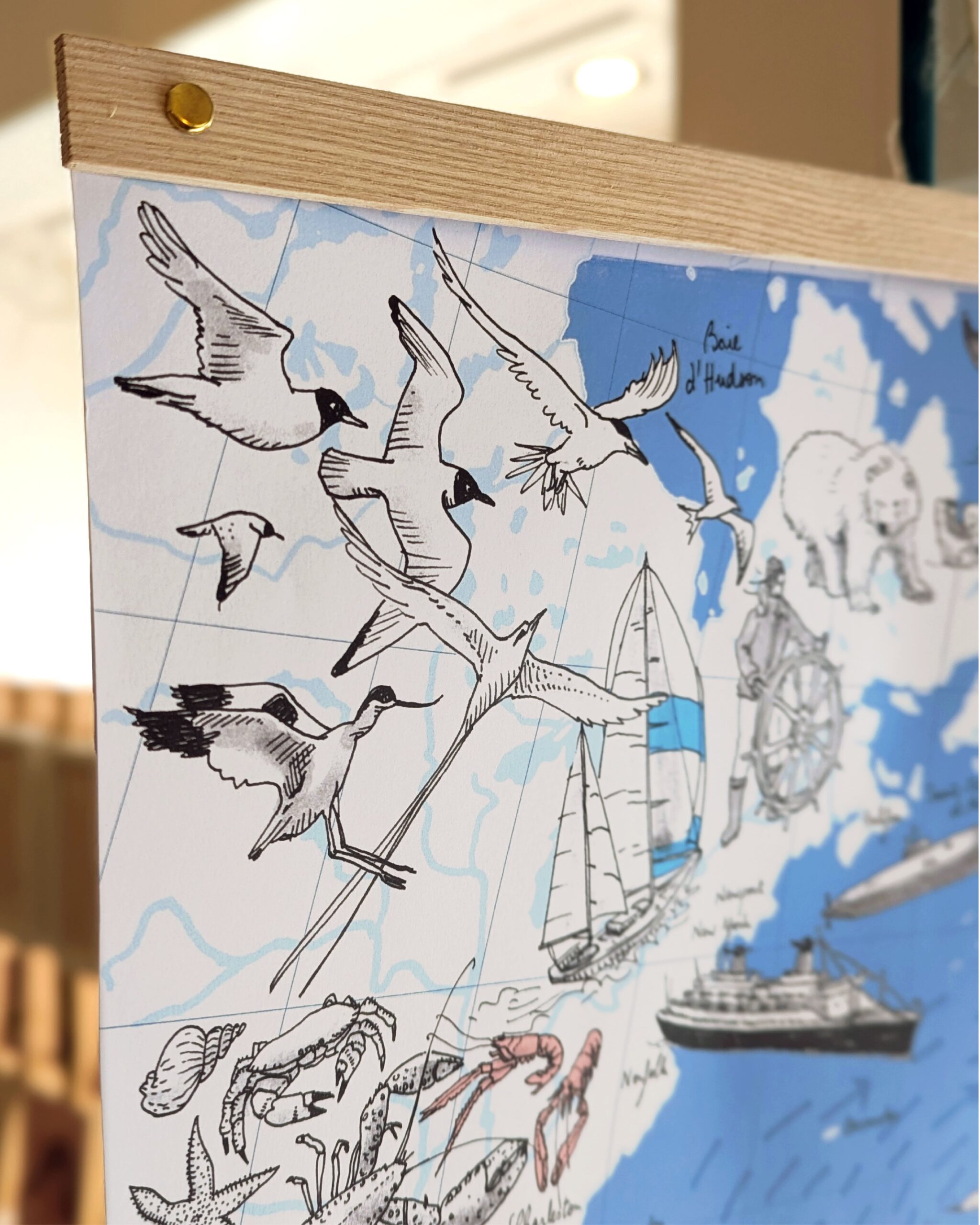 La carte illustrée de l’Atlantique Nord vous fait revivre les plus belles transatlantiques.
